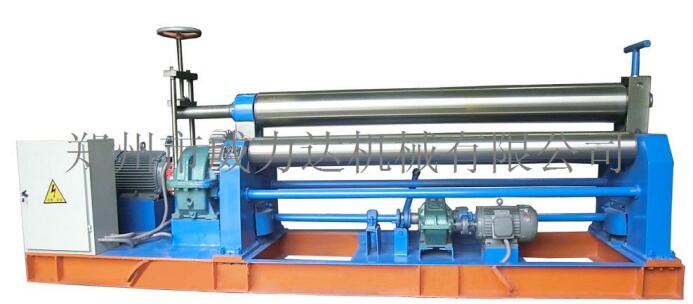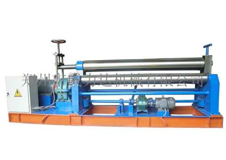該機(jī)為對(duì)稱式三輥卷板機(jī),兩下輥為主動(dòng)固定輥,上輥通過(guò)升降絲桿、渦輪、蝸桿在兩下輥對(duì)稱中央作上下移動(dòng),兩下輥的左、右旋轉(zhuǎn)和上輥的升降移動(dòng)均靠電機(jī)帶動(dòng)減速器來(lái)完成,并能借助手動(dòng)離合器把上輥調(diào)節(jié)成平行或傾斜位置,以適應(yīng)卷制圓形和錐形工件的需要,渦輪上下配有特種壓力軸承,轉(zhuǎn)動(dòng)輕松、省電耐磨。該機(jī)集機(jī)身、傳動(dòng)、電器部分為一整體,其結(jié)構(gòu)緊湊、操作方便、便于搬運(yùn)、安裝和維護(hù)。